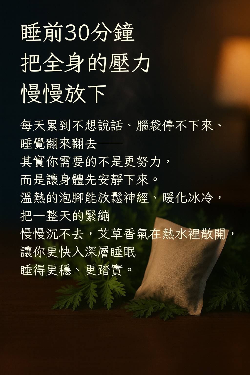艾草足浴包,就是專為「睡前放鬆」設計的療癒小儀式。